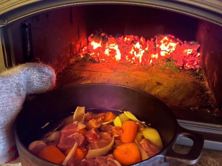 Talvikaudella lämmitämme tuvan leivinuunia ja haudutamme illalliseksi karjalanpaistia ja kasvis-papupataa. Kesäkaudella grillaamme vartaita, jotka tarjoilemme kesäperunoiden sekä salaatin kera.