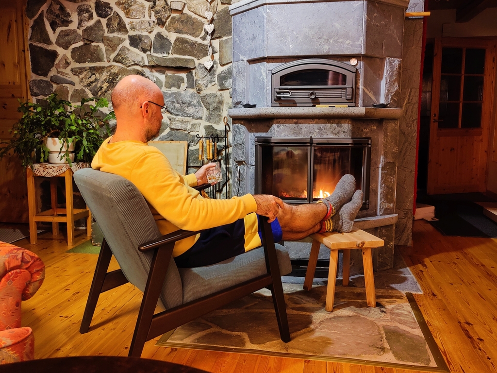 Jos saavut myöhään, nukkumaan ei tarvitse mennä nälkäisenä. Iltapalaksi tarjolla on lähileipomon karjalanpiirakoita sekä kahvia, teetä ja mehua tai nuotiomakkaraa paistettavaksi takassa tai pihan nuotiopaikalla.
