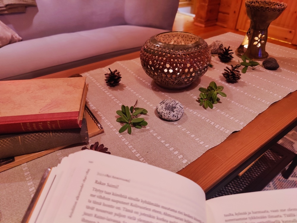 Villasukkakävelyllä pääset kokemaan talvisen metsän kaikilla aisteilla. Villasukilla kävellessä askel on pehmeä ja mieli avoin ja pystyt tuntemaan lumen pinnan muodot jalkapohjallasi. On kuin kävelisi paljain jaloin, ilman että varpaita palelee tai kivet pistelevät kantapäitä. Ilman kenkien kovaa pohjaa muutkin aistit herkistyvät luonnostaan havainnoimaan ympäristöämme.